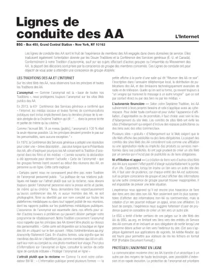 La comunicación moderna en Alcohólicos Anónimos (AA) fluye de un alcohólico a otro mediante medios de alta tecnología, con potencial de expansión y rápida evolución. Proteger el anonimato es una prioridad para los miembros, cada vez más de los cuales tienen acceso a internet.