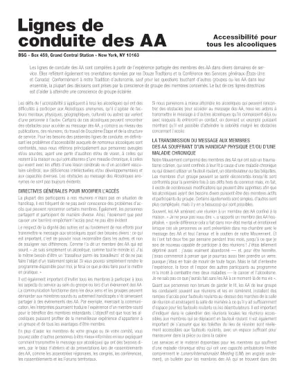 Los desafíos de accesibilidad afectan a todos los alcohólicos que tienen dificultades para participar en Alcohólicos Anónimos, ya sea por factores mentales, físicos, geográficos, culturales u otros que varían de persona a persona. Algunos de estos alcohólicos pueden encontrar barreras para acceder al mensaje de AA, incluso a nivel de...